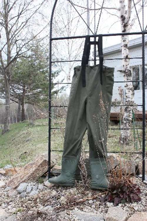 そうです、渓流釣りのマストアイテム『ウェーダー』です、”胴長” 胴付長靴とも呼ばれるこの特殊な防水ブーツがあれば腰まですっぽりと覆われた防水布により中に水が浸入してくる事もありません