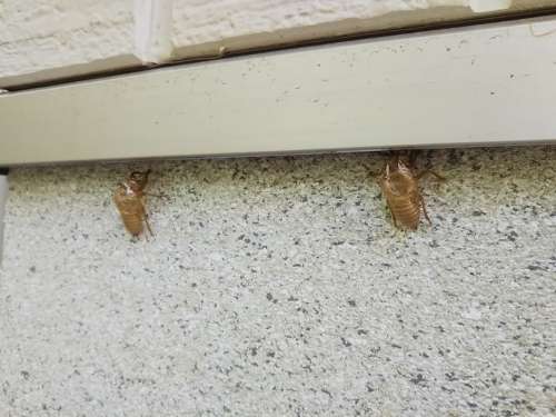 <基礎に付いていたセミの抜け殻(5月23日撮影)>