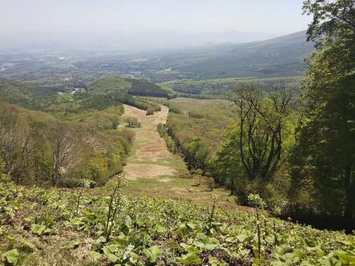 <下倉スキー場が見下ろせるところまで來ました(5月23日撮影)>
