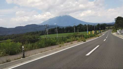 <立體交差を過ぎると、牧場越しに巖手山が望めます(9月10日撮影)>