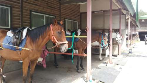 <こちらは馬具を付けて待機中です(9月10日撮影)> 公園自體はそれほど広大なわけではないので、一回りするのはそれほど大変ではありません。それでも靜かな所で馬はのびのびと生活できて気持ちよさそうです。