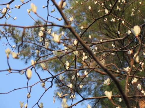 夕日を浴びてリョウブの新芽も淡く輝いているように。