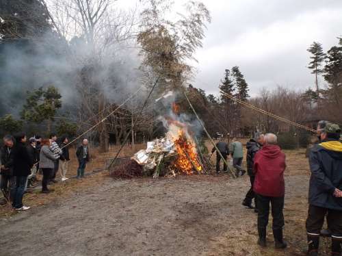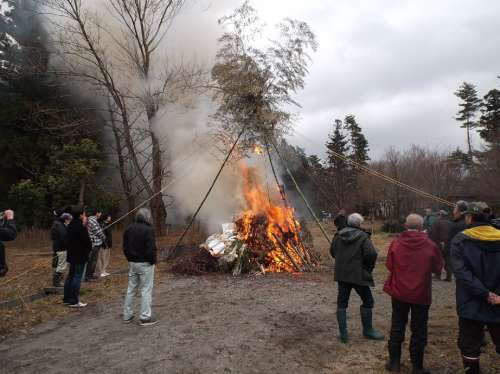毎年恒例となっている 地元や周辺施設(shè)、大山リゾートのオーナー様が參加する 「とんどさん」が大山リゾート隣接の交流の森公園で開催されました。 「とんどさん」とは新年に行われる火祭行事の事で 地域によっては「とんど焼き」「左議長」などと呼ばれる 正月飾りなどを焼く行事で一年の無病息災(zāi)を祈って行われています。 今年は積雪がない狀況での「とんどさん」。 私も大山リゾートに赴任してきて初めての経験です。 大山ガーデンプレイスの支配人の挨拶の後、著火です。 今年は年末から天候が良かった為すぐに大きな炎が立ち上がります。 地元の方が用意していただいたぜんざいなどの料理も振舞われ 街中ではあまり見かけなくなった伝統(tǒng)行事を楽しみました。
