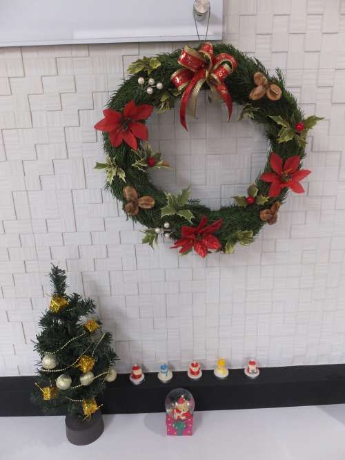 ウェルカムオフィスも、少しだけクリスマスの飾りつけを オーナー様からいただいた、手作りのクリスマスリース