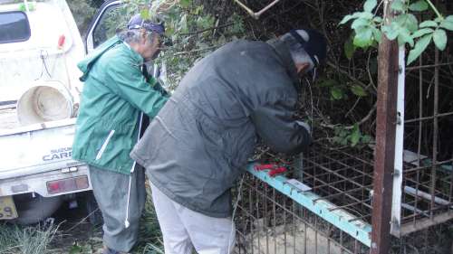 この仕掛けの中にイノシシがいるそうですよ~