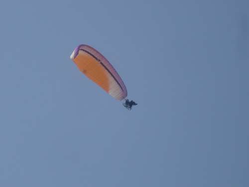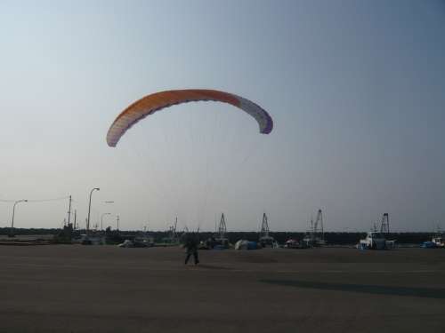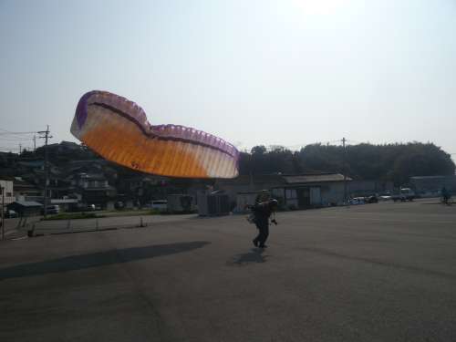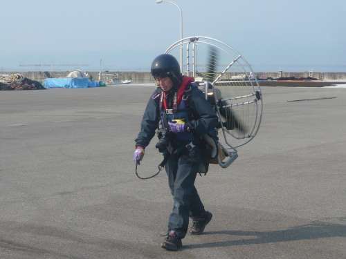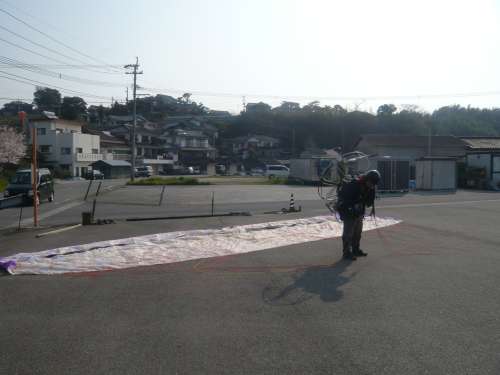 本日主役の1つ、『パワードパラグライダー』です そして??? こうなります このお方は、西村博夫さんです。 このパワードパラグライダーでの空撮を日本だけでなく、世界中で活動(dòng)されているんですよ っと。そろそろ離陸のようです おおー??! 飛びました!飛びました?。?br /> どんな寫真が出來上がるのか楽しみに待ちましょう (上記寫真は平成21年4月撮影)