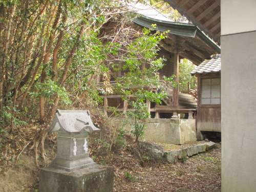 2023年も ロイヤルシティ別府灣杵築リゾートを よろしくお願い申し上げます。 さて、新年の慣わしの ひとつに、初詣があります。 社寺に參り、昨年のお禮 と 今年の願いを伝えるもの。 願いを 神頼みするって、多種多様有りますよね~ 無病息災?家內安全?開運招福?商売繁盛?戀愛成就など 超他力本願の私:チリメンは、ご利益を求めて、 杵築リゾート周辺の神社に お參りする事にしました。 『現地便り』での カテゴリ分けは、 『周辺の情報』なのですが、調べていくうちに、 過去の市町村合併に 行き當たりましたので、 『歴史』のジャンルとしました。(??) 実は、 杵築リゾートの2號公園に、お社が在ったのです。 現在は鳥居も祠も 移転されました。(殘念) その昔、お隣の加貫區の人々が、 奉納祭を 年に一度 執られておりましたが、 10年ほど前に、除霊祭が催されたのです。 祀神は、善神王 で、五穀豊穣の神様でした。 善神王の詳細は、 當歴史ブログ 2009年 11月 27日 投稿を參照下さいませ。 階段の上部に 江戸時代に奉られた鳥居が 在りました (2023年 1月 7日 撮影) 祠の跡 寫真中央の大巖が、ご神體でした (2023年 1月 7日 撮影) オーナー皆さまの健康長壽を お願いしました 杵築リゾートから 一番近い お社は、 お隣り加貫港に鎮座される『八坂社』です。 (杵築リゾートから約1.1km) 八坂社の鳥居 (撮影日は去年2022年の 9月) 社伝銘文は有りませんが、 八坂社なので、祀神は 素戔嗚尊(スサノオウノミコト) 京都の総本社では『祇園さん』とも呼ばれ、 あらゆる災いを祓う神様ですね。 境內正面には、拝殿を兼ねた神楽殿があります(2022年 9月撮影) 神楽殿の奧に見えるのが、 主祀神を祀る祠と 5祀神を奉る石柱です。 5角形の石柱に彫られてる祀神は、 天照大神=素戔嗚の姉神 太陽神?皇祖神 倉稲魂命=素戔嗚の娘神 穀物神 大己貴命=素戔嗚の6世孫 大國主尊の青年期名稱 妙彥名命=大國主の國造りの協力者 垣山姫 =不明??すみません分かりませんでした 荒ぶる神の 素戔嗚尊も、 神戚(しんせき)に囲まれると、流石に大人しい? 八坂社を やや後方から撮影 右に祠 と 石柱(2022年 9月撮影) 境內の右側には、『金毘羅宮』も祀られています。 祀神は、金毘羅大権現。ずばり、海上交通の神様です(2022年 9月撮影) 航海の安全と大漁を祈願しました。個人的には、船酔いしませんように,,,,,,,, 確定的ご利益「船酔い防止」を 八坂社にお願いし、 更なるご利益を求めて、熊野社へ參りに向かいます。 杵築リゾートの地番表示は、杵築市大字熊野〇〇です。 大字の地名となってるから、この地域の氏神様? 熊野社に向うため、県道から外れたとき、 『歳之神元宮』と彫られた石柱を見つけました。 (杵築リゾートから約3.2km) (撮影日記載以外の寫真は全て、2023年 1月13日撮影) 道路の斜向かいには、『歳之神社』が在ります。 移転したのでしょうか? 鳥居の先には、神楽拝殿があり、奧に祠が見えます。 ここにも社伝銘文は有りませんでした。 『歳之神』を 調べてみると、 素戔嗚の子:大年神(五穀豊穣の穀物神)とする説。 また読みから『塞之神(道祖伸)』とする説。 村境に鎮座し、他所から邪悪なものの進入を防ぐ守り神。 旅や航海の守護神でもあり、ご利益は子孫繁栄。 この近くでは、『國東塔』も數基が奉納されています。 私も、交通安全と家庭安全?をお願いしました 確かに、 このお社から100mほど南に行くと杵築市を外れます。 行政區が違う 速見郡日出町真那井に入るのでした。 江戸時代も藩が違って、杵築藩と日出藩でした。 さて、いよいよ 『熊野社』へ向かいます。 『歳之神社』から東へ 400mほど農道を進むと、 広いグランドのような 平らな「空き地」が有ります。 (杵築リゾートから約3.6km) (今後の寫真は全て、2023年 1月13日撮影) 校舎と校庭が在ったと思われる広さです。 その昔の尋常小學校? 空き地の中ほどに、鳥居が建っていて、奧に石段が見えます。 熊野社 と書かれています 100段ほどの石段を登りきると、 山頂の峰に『熊野社』が鎮座されてました。 お社には社伝銘文は無く、神楽拝殿の造りは一緒です。 奧には立派な社殿が在りました。 祀神は、熊野大権現 と思われます。 (手前) 石造りの祠 (奧) 木造の社殿 『熊野大権現』は3神一體で、 スサノオ?イザナギ(父神)?イザナミ(母神) 神仏習合して、順に 阿彌陀如來?薬師如來?千手観音と なります。 ここで「世界平和」を願い、鈴の緒を振りました。 緒の先には、熊野の自治會名が書かれていました。 原北 ? 原南 ? 年田 ? 加貫 4つの自治會とも地番は、大字熊野です。 やはり、 この地域の 鎮守の氏神さま?。。。(決定!) 古い石燈籠に彫られた文字をを 読んでみると??? 「寛政二歳(年?)奉納」「原村中」 とあります。 奉納の寛政二年は、江戸時代の後期で、西暦1790年。 全國が飢饉続きで、寛政の改革の真っ最中の頃ですね。 江戸時代の當地は、西海道 豊後國 速見郡 八坂郷 原村 ここから「歴史ブログ」市町村の合併に変わります。 江戸時代が終わり、明治になって 