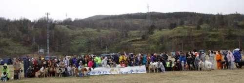 昨年に続き今年も八幡平市のさくら公園(リゾートより約5km)で4月26日に開催され、飼い犬のオーナーさんはじめ約40組100人以上の參加者とセントバーナード、ゴールデン?レトリバー、ラブラドール?レトリバーなどのお馴染みの犬種からアフガンハウンドやバーニーズ?マウンテンドッグ、グレート?ピレニーズ、ボルゾイなどなど、日頃なかなか見ることができない犬種60頭余りが一同に集まりました。