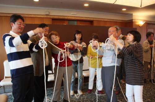 ロープとロープをつないで長くする、本結びや、自分の體や立木などにロープを結びつける舫い結びなどの実習も行いました。