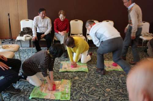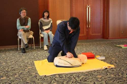 八幡平消防署の職員の方のご協力もいただき、心肺蘇生法の実習も行いました。心臓マッサージは、継続して続ける必要があり、多くの方の協力を得られる方が救命率が高まる事、その為には「自助」と「共助」の間にある『近所』の力が大切な事などスタッフもオーナー様と一緒に學ばせていただく事ができました。