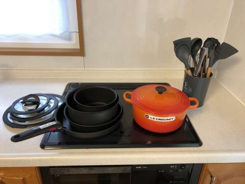 煮物料理にも使いやすい鋳物ホーロー鍋を設置しました