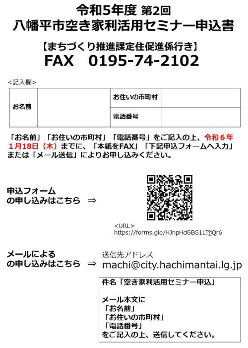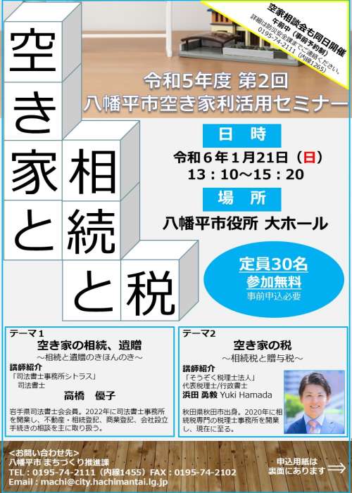 八幡平市空き家利活用セミナー開催 「空き家と相続と稅」 <主催:八幡平市まちづくり推進課>