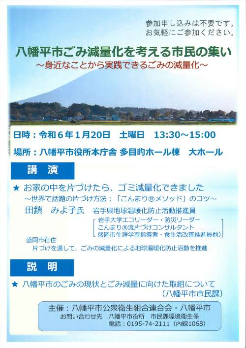 八幡平市ごみ減量化を考える市民の集い <主催:八幡平市公衆(zhòng)衛(wèi)生組合連合會?八幡平市>