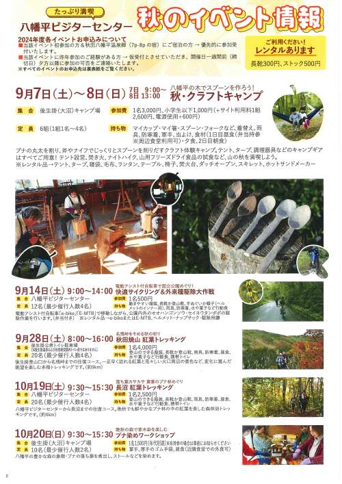 2024年 八幡平ビジターセンター 秋のイベント情報のご案內(nèi) ★八幡平ビジターセンター ホームページ 2024年秋のイベント情報はこちら ↓ 2024春-秋期 トレッキング/サイクリングツアー&體験プログラム 予定表 | 八幡平ビジターセンター Hachimantai Visitor Center (hachimantai-vc.com)