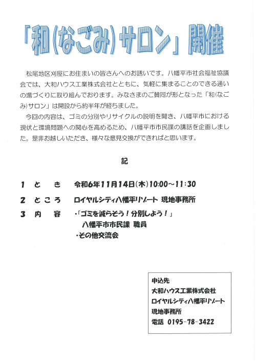 第4回 和(なごみ)サロンのご案內 <主催:八幡平市社會福祉協議會>