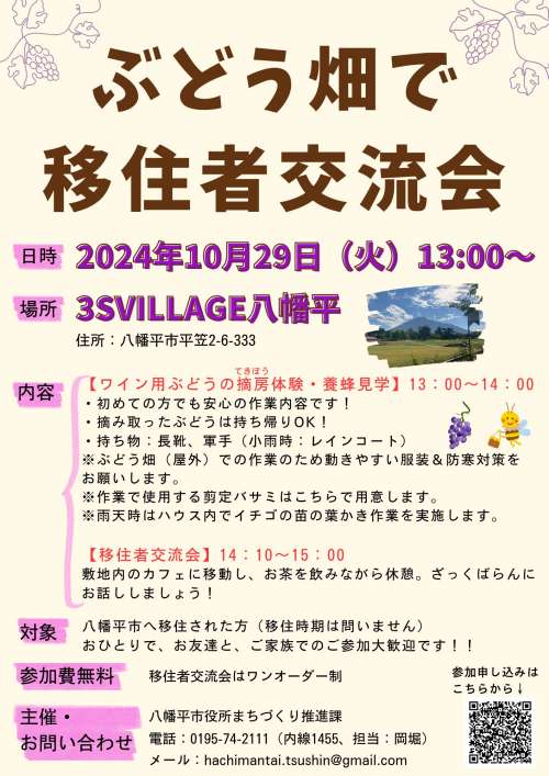 ぶどう畑で移住者交流會 <主催:八幡平市 まちづくり推進(jìn)課>
