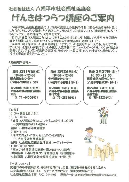 げんきはつらつ講座のご案內 <主催:八幡平市社會福祉協議會>