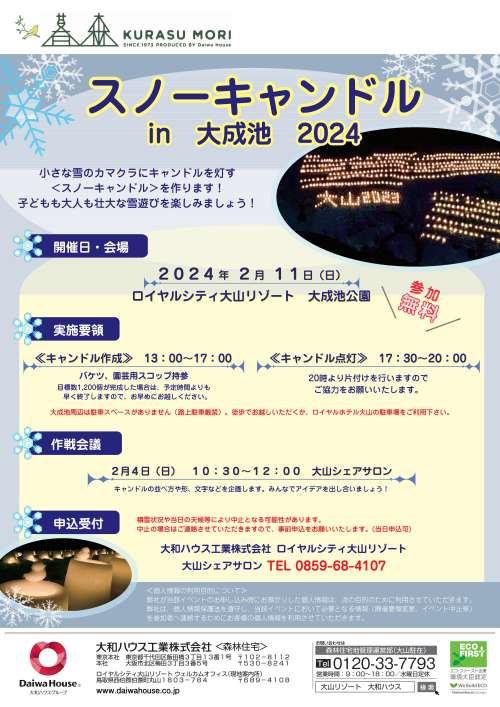 《スノーキャンドルin大成池2024》開催のご案內です。