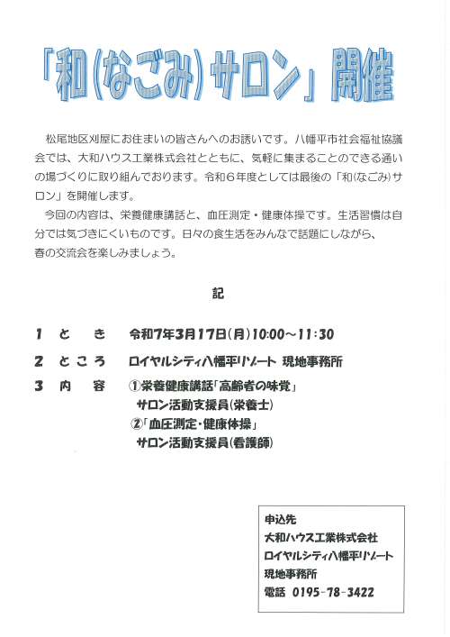 第6回 和(なごみ)サロンのご案內 <主催:八幡平市社會福祉協議會>