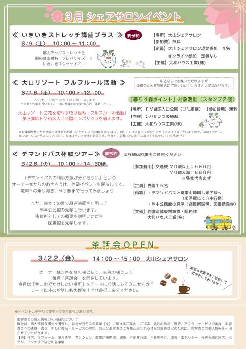 『3月2日(土)、3月9日(土)の各日13:30〜14:30で