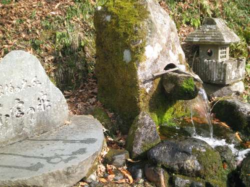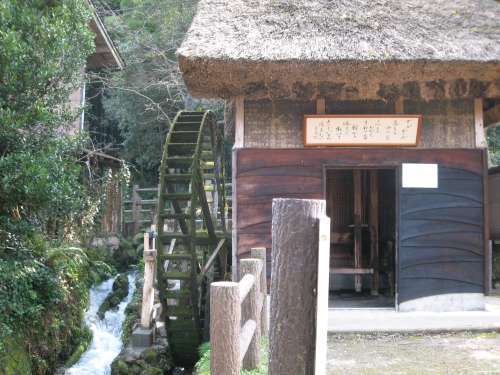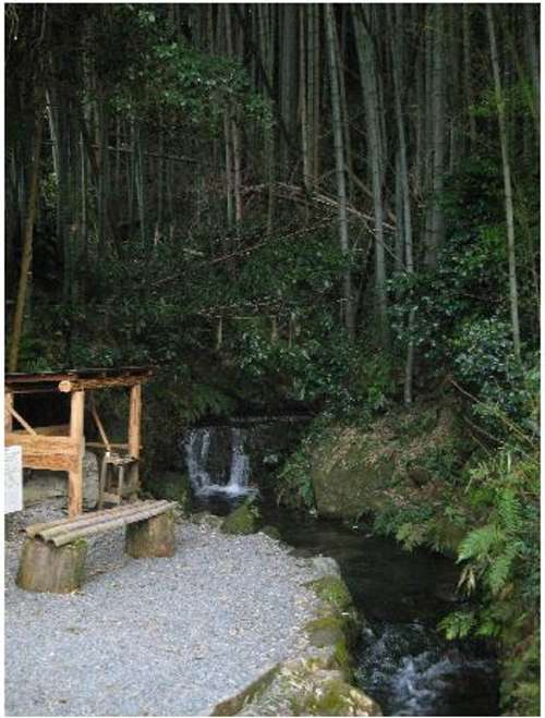 2千年もの昔から人々の生活と耕作の水源として大切にされたというこの泉の隣には、歴史を感じさせる水車小屋があり、竹藪に囲まれ木蔭になった泉周辺は神聖な場所を思わせる雰囲気です。