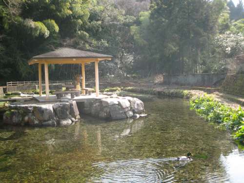 この泉は日量3萬トンという県下でもほかに例を見ない湧水量を誇るほか、古くから生活用水?農業用水?魚類の養殖などに利用されているという、人々の暮らしに密著した泉です。