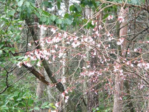 その陽気に誘われてか、ヤマザクラが壇香梅(だんこうばい)に続いて花を咲かせ始めました。先週まではコブシの方が先に花を咲かせそうな雰囲気でしたが???。