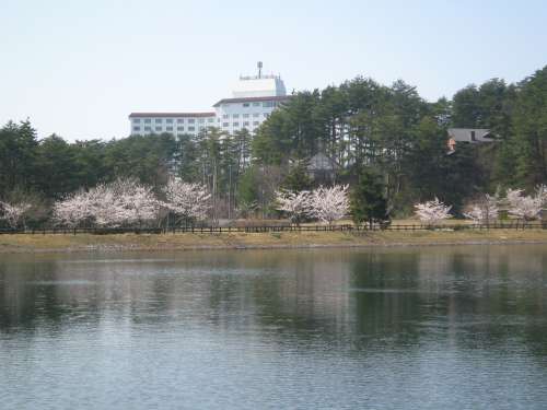 大成池の周辺以外にも敷地內ではたくさんの山桜が花を咲かせており、