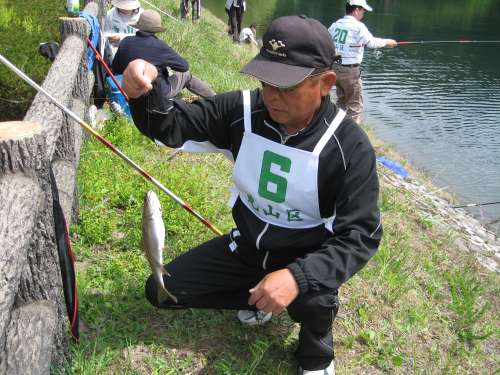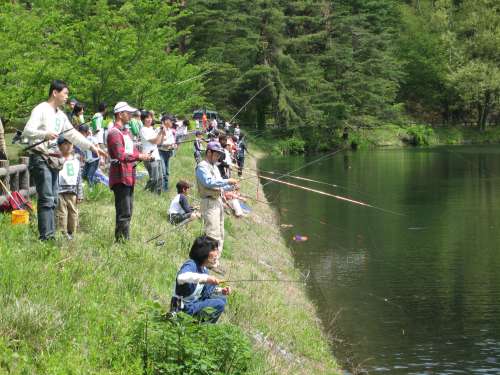 お祭りの中でも好評(píng)なのは、一年に一度この日だけ解禁される大成池でのマス釣りです!皆さんで釣ったマスの大きさを競(jìng)い合いをおこなう真剣勝負(fù)なのです!