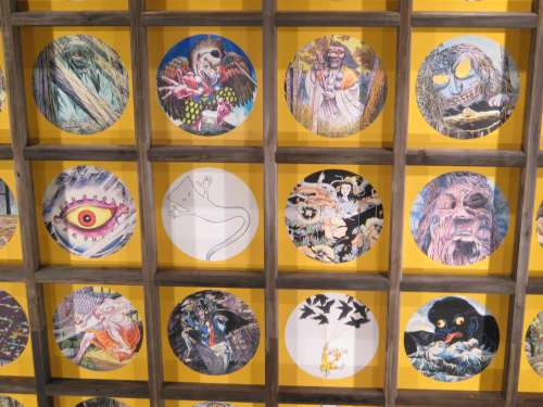 こちらがゲゲゲの鬼太郎でおなじみの、水木しげるさんによる妖怪絵図が描かれた天井畫です!