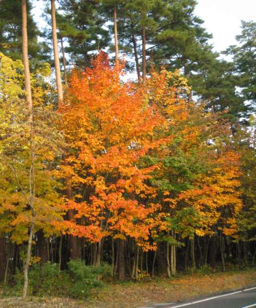 別荘地內の事務所のすぐ上の「ウリハダカエデ」別荘地內に數多く樹生しています。赤~黃色のコントラストが綺麗です。