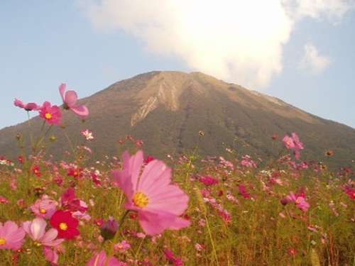 大山とコスモス