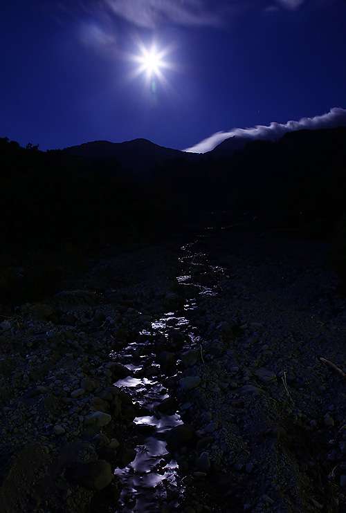 南光河原にて。 月明かりで浮かび上がる光の道。 この先にあるのは???。 別荘地より約5.4km 平成23年9月12日撮影