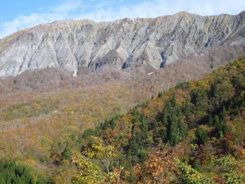 大山の荒々しい山頂付近と紅葉のコントラストがとてもきれいでした。