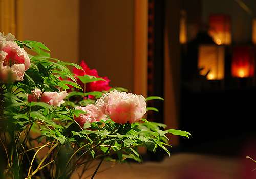 もちろんボタンの花も楽しめます。夜ならではの粋な演出にも注目。