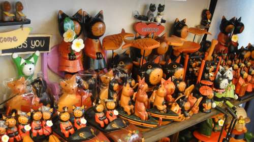 豊富な種類のお香 様々な種類の人形