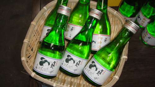 エメラルド色に光る瓶の中には、智恵美人という清酒が