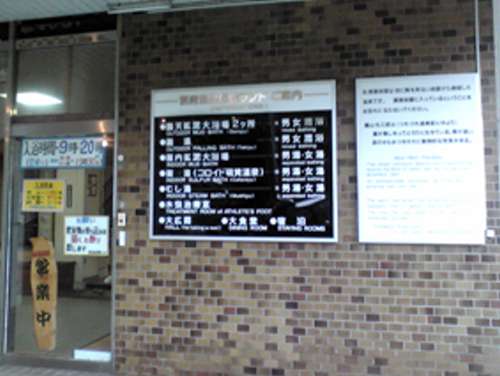 まず、內湯のコロイド湯で溫まり(このお湯も濁っていて足元が見えないので段差がわからずおそるおそる入りました。)、壁に貼ってあるコロイド湯の効能はアトピー?しみ?ニキビ?日焼けによるメラニン色素の抑制???。色白になるのかーあ、水蟲にもいいみたいですね