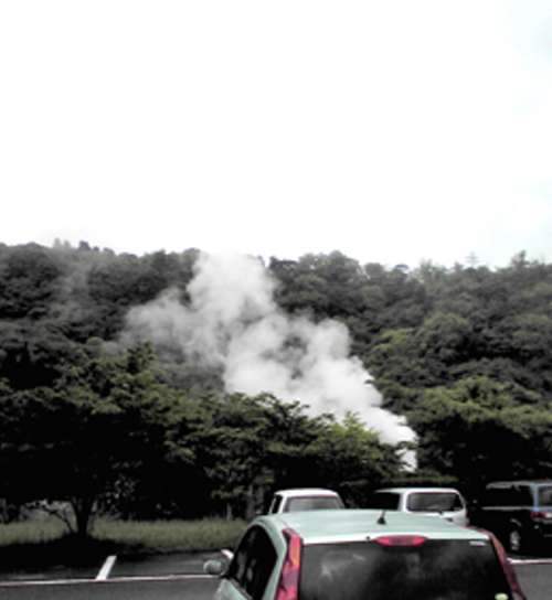 別府の中でも明礬という山の上の方に位置していて、有名なのは湯の花小屋です。