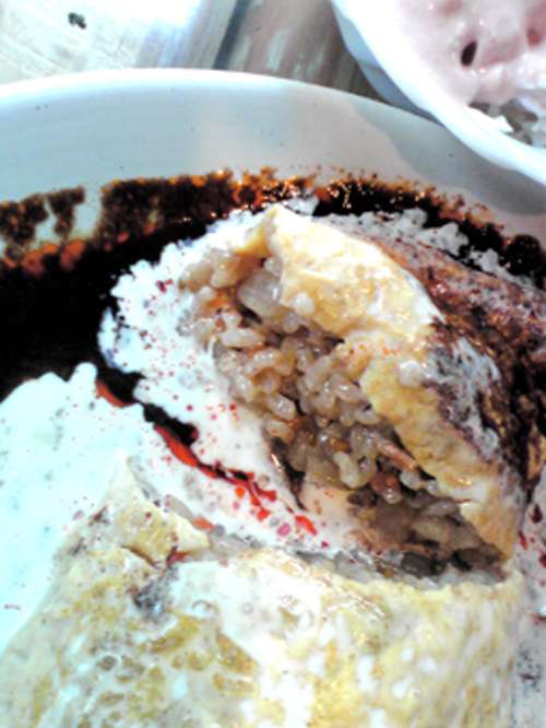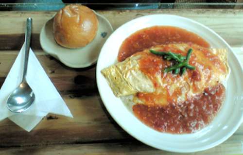 オムライスは、デミグラスソースと生クリームかと思いきや