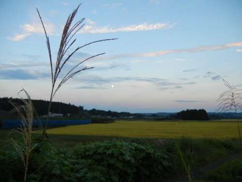 中秋の名月にススキ、そして黃金色に輝く水田。豊かな自然がここにあります。