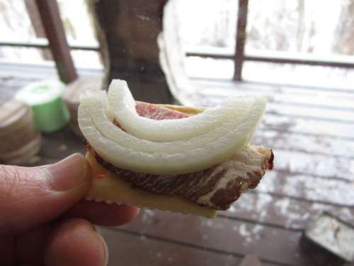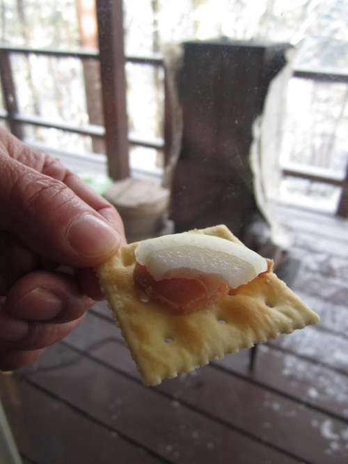 クラッカー?自家栽培のタマネギと共にいただきました。