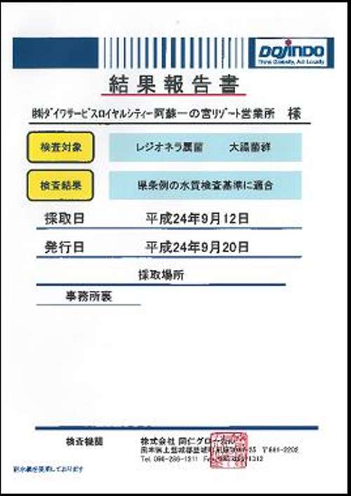 ▲溫泉成分の検査結(jié)果報告書