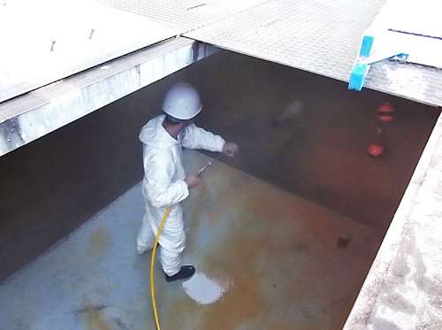 ▲沈殿槽清掃作業(yè)(平成24年10月撮影)