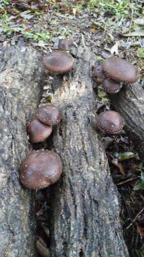 N様がナラの木にシイタケの栽培をし、こんなに立派なシイタケが