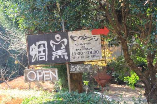 御船町の吉無(wú)田高原に石窯で焼くこだわりのピザがあるというので案內(nèi)して もらった。西原村から吉無(wú)田高原方面に走っていると至る所に「蜩窯」の黒い 看板が出ているので、その看板をたどりながらわりと簡(jiǎn)単に行くことができたが、 脇道の1kmは車が1臺(tái)やっと通れる凸凹の砂利道なので、車高の低い車は 避けた方が良さそうです。