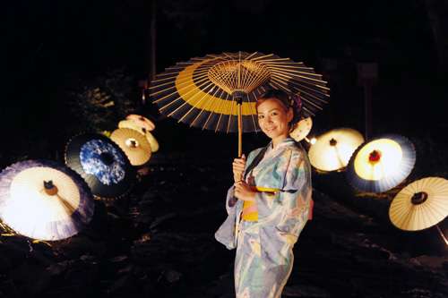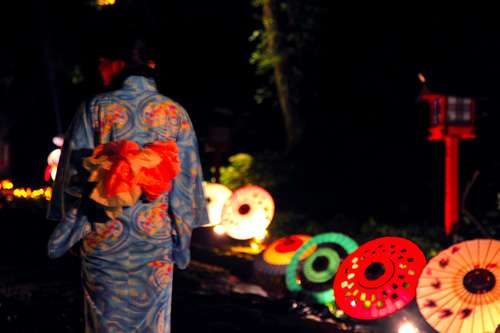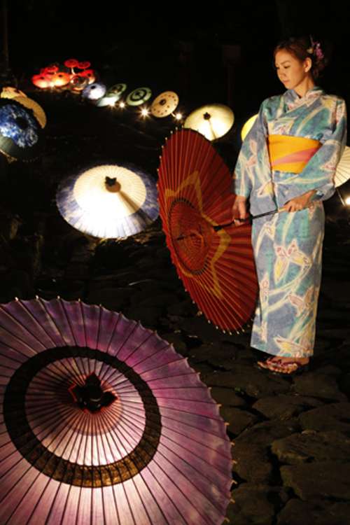 今年のテーマは「浴衣で歩く」。 和傘に縁取られた燈り道を浴衣姿でのんびり歩いていただく仕掛けやサービスを用意し、みなさんをお迎えします。