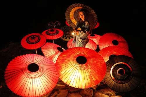 ただ年々高齢化が進み、なかなか地元として継承?発展が難しいことに頭を悩まさせていた時、地元のクリエーター集団が手をあげ、所屬する和傘職人の作品をいかした燈りの演出をと昨年よりスタートいたしました。