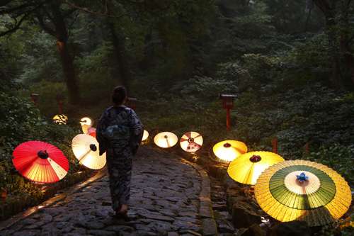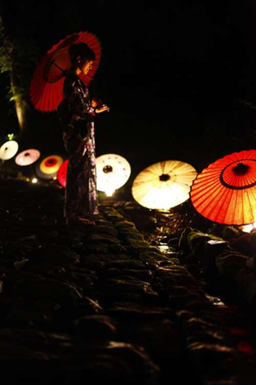 日本伝統のお盆をより感じてもらおうと大山參道振興會、大山観光局、大山寺、大山町が大切に大切に守り続けてきたお盆の燈り。 そんな燈りの演出をさらに美しく、さらに幻想的にアレンジすべく、「大山ものづくり學校」などの運営でも知られる山陰sacca、また地元の観光振興をリードするNPO大山王國が協力。 大神山神社奧宮へと続く石畳の參道に新たな燈りをと、地元の職人が丁寧に手作りした和傘が配置され、和の燈り參道として幻想的に演出されました。