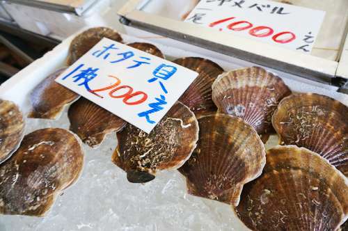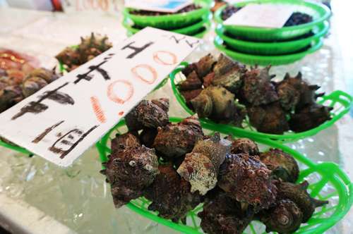 新鮮で多種の海の幸があります。巖牡蠣、さざえ、白いか、ホタテ貝。